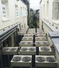 Various temperatures are required for equipment in retail stores. An integrated system of freezer, refrigerator, and air conditioner for convenience stores saves approx. 50% of consumed power.